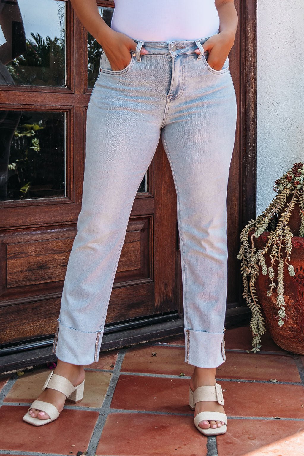 Bayeas Light Blue Straight Leg Cuffed Jeans - FINAL SALE