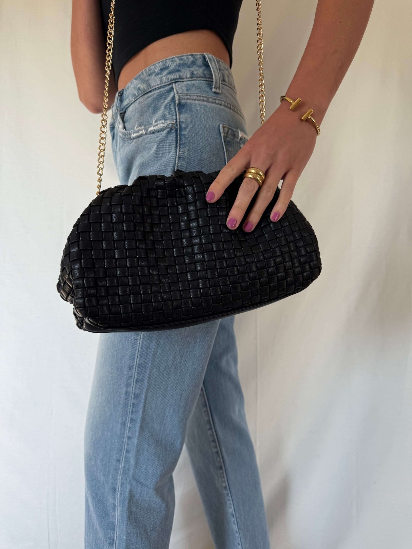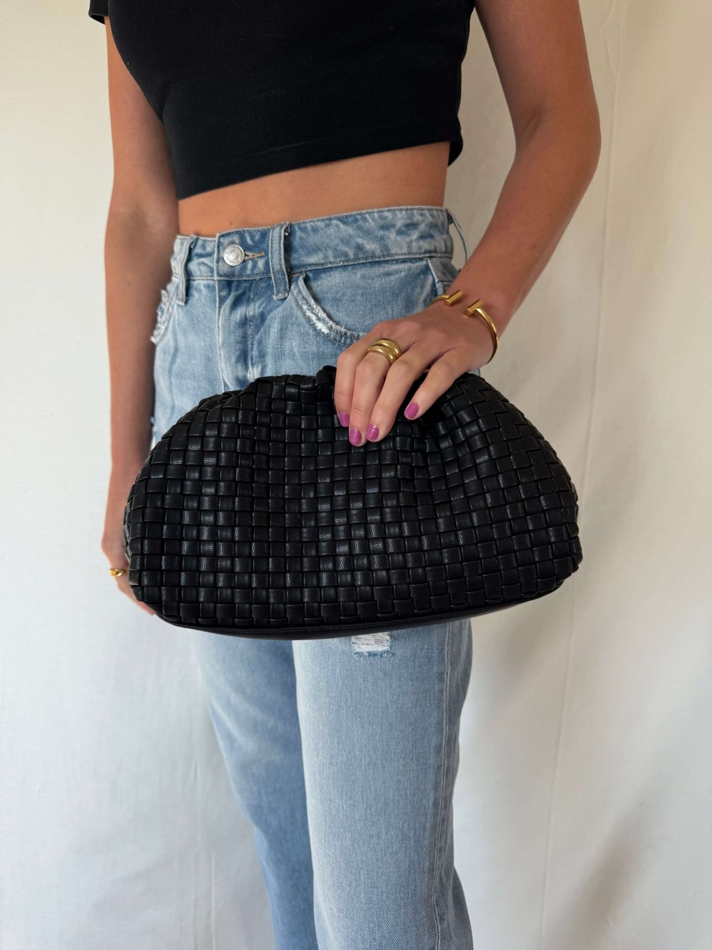 Black Tate Vegan Leather Woven Clutch - FINAL SALE