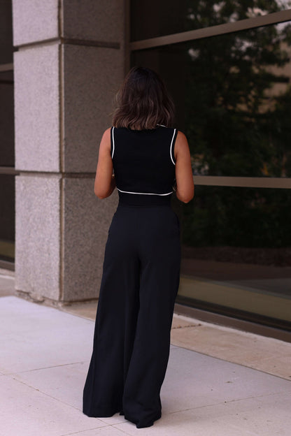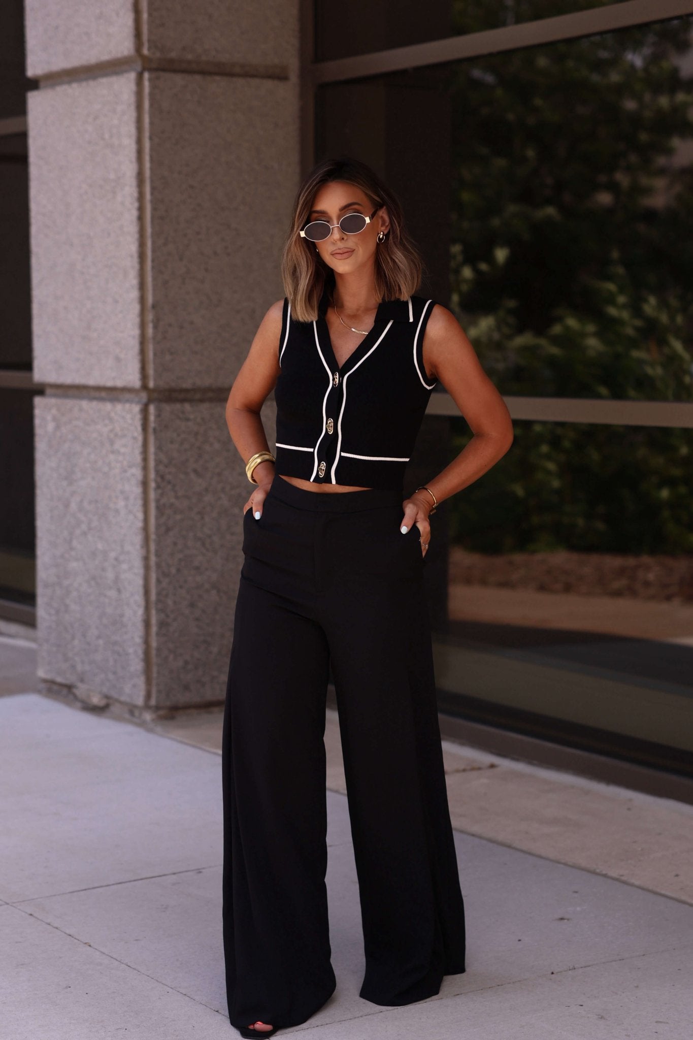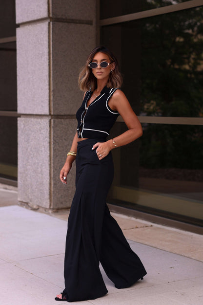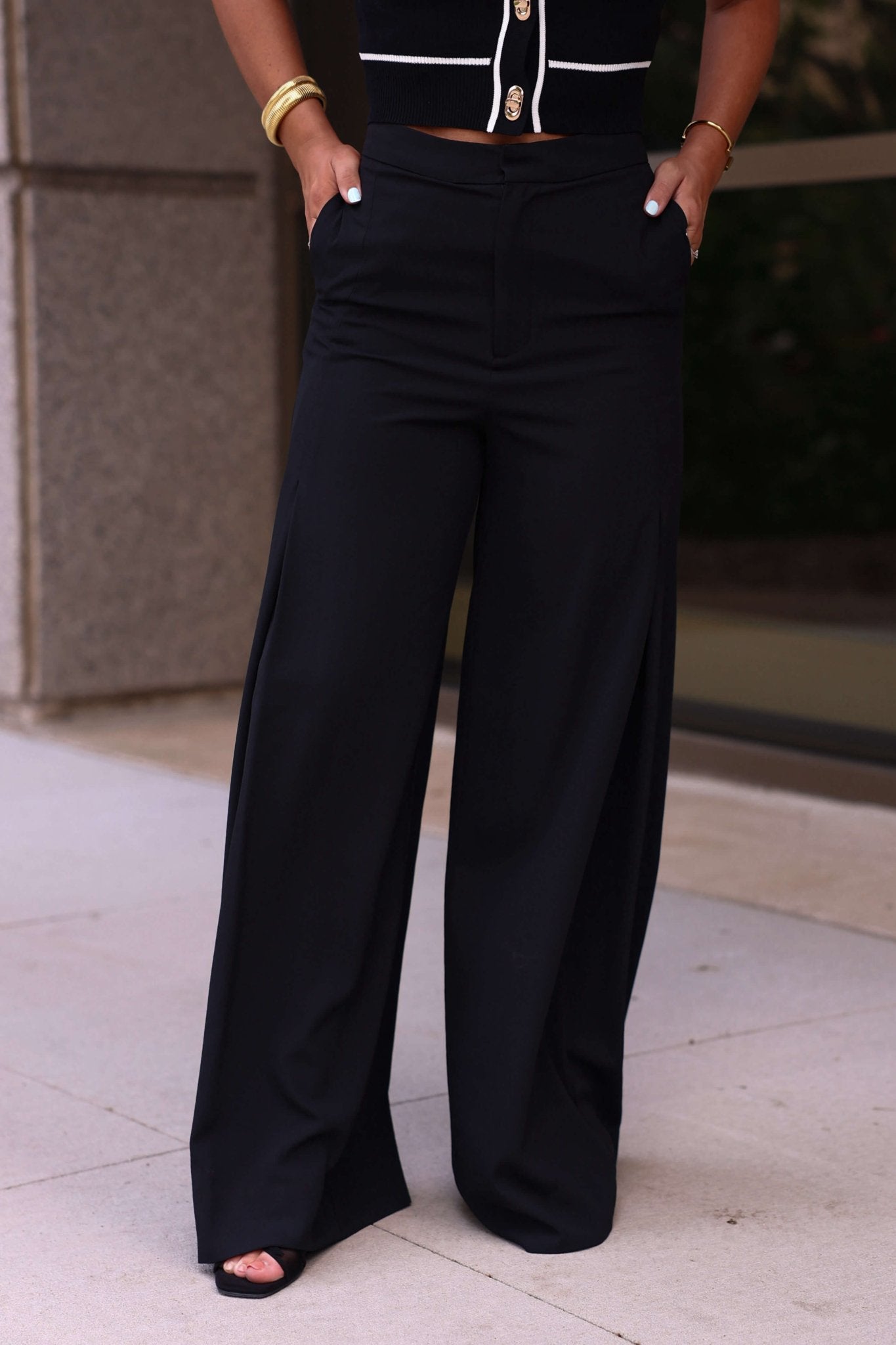 Sleek, tailored, and ready for the office—the Collins Wide Leg Trousers are a modern workwear essential. Designed with a flattering high-rise waist, comfort stretch fabric, and soft tucking detail for a polished finish. The wide-leg silhouette moves with ease, while side pockets and a front zip with hook & eye closure keep the look clean and functional. Pair them with everything from fitted tanks to structured blouses.