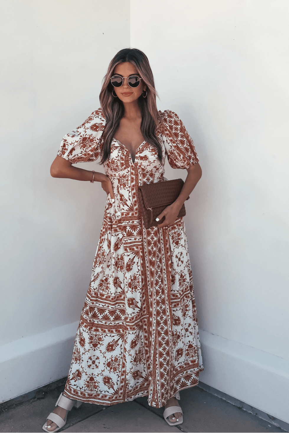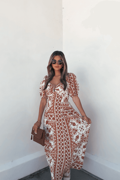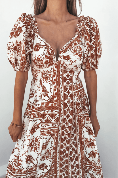 Cynthia Multi Rust Print Midi Dress - FINAL SALE