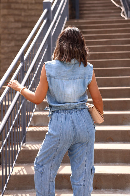 The Elan Double Tie Denim Top is your new warm-weather favorite. Crafted from lightweight, breathable fabric, it features a relaxed fit and a subtle V-notch collar for just the right amount of detail. Pair it with cutoffs, wide-leg pants, or your go-to white denim for an effortlessly cool look.