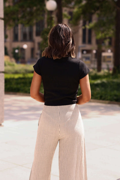 The foundation of every polished outfit—the Everyday Essential Tee is a must-have basic for your back-to-work lineup. Featuring a classic round neckline and short sleeves in soft 100% cotton, it offers a clean, comfortable fit that pairs with everything from tailored trousers to relaxed denim. Also available in white for endless versatility.