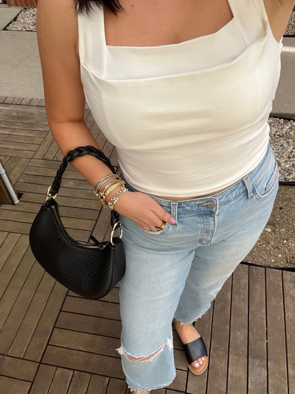Elegant Double Layer Square Neck Tank Top - Ivory - FINAL SALE