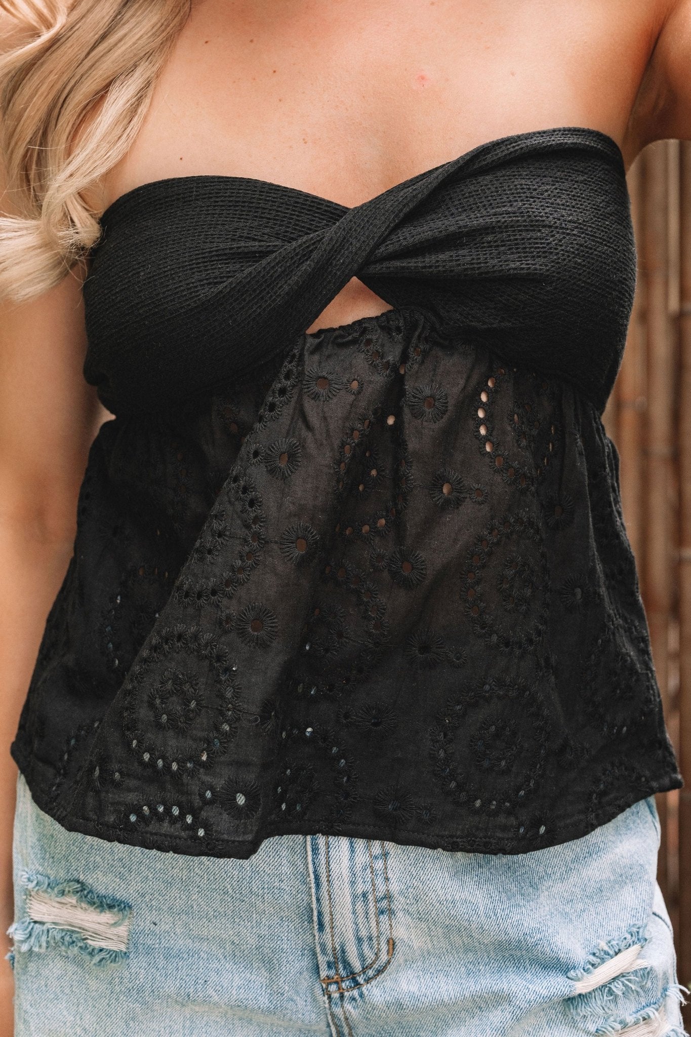 Katrina Black Twist Front Eyelet Tube Top - FINAL SALE