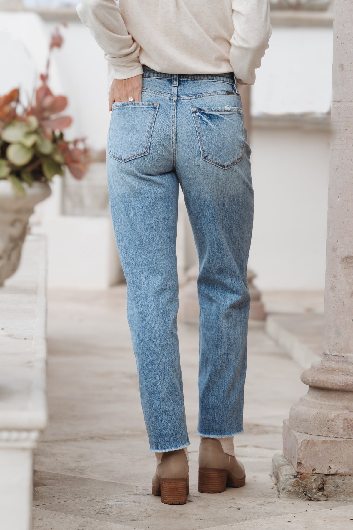 Light Wash High Rise Distressed Mom Jeans - FINAL SALE
