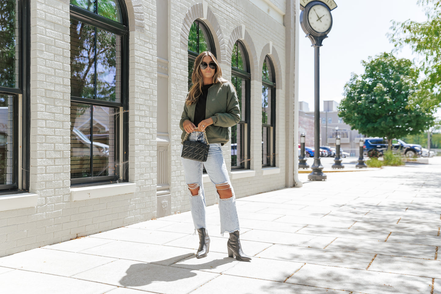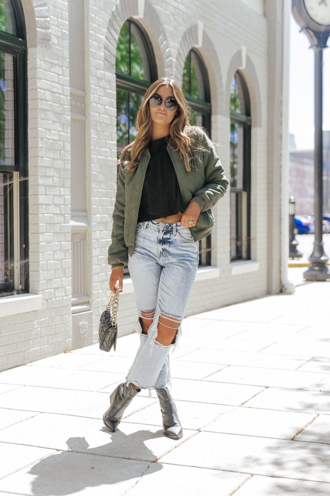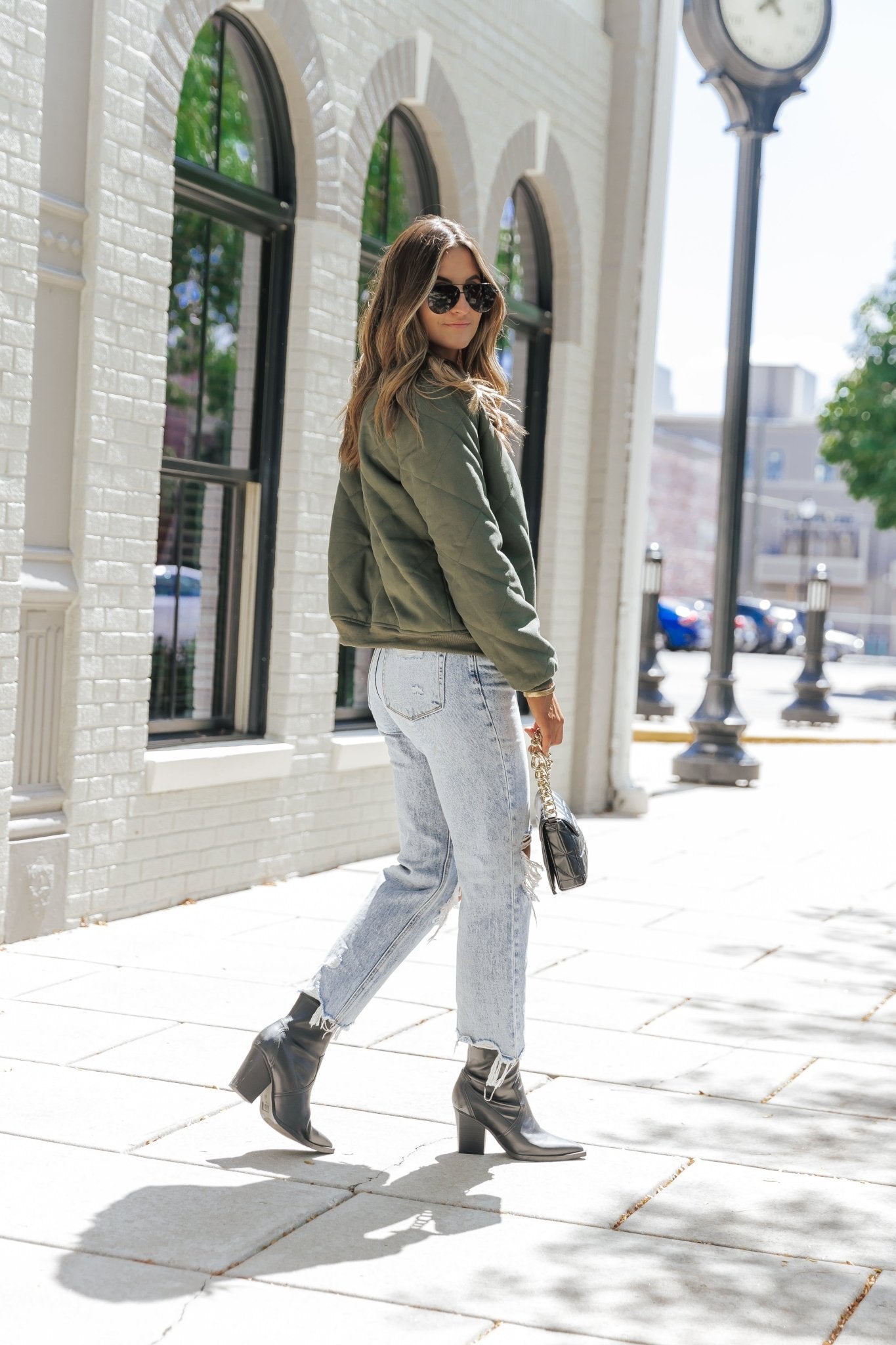 This bomber jacket is a great alternative to throw on in the fall, and it comes in THREE colors: Black, Olive, & Light Mocha! Just layer it over a basic cami or tank top and then pair it with denim jeans and sneakers for a cute everyday look.