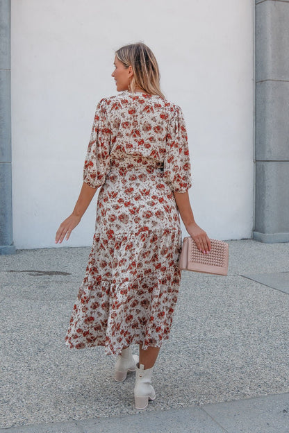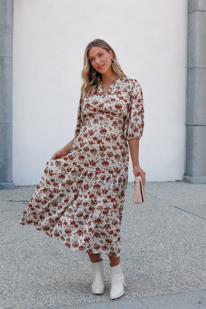 Rowan Cream & Rust Tiered Midi Dress