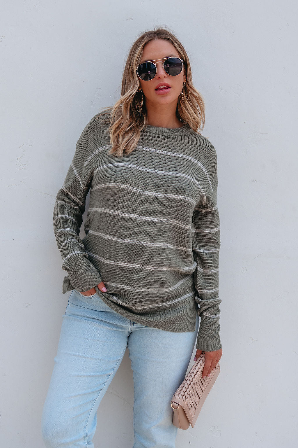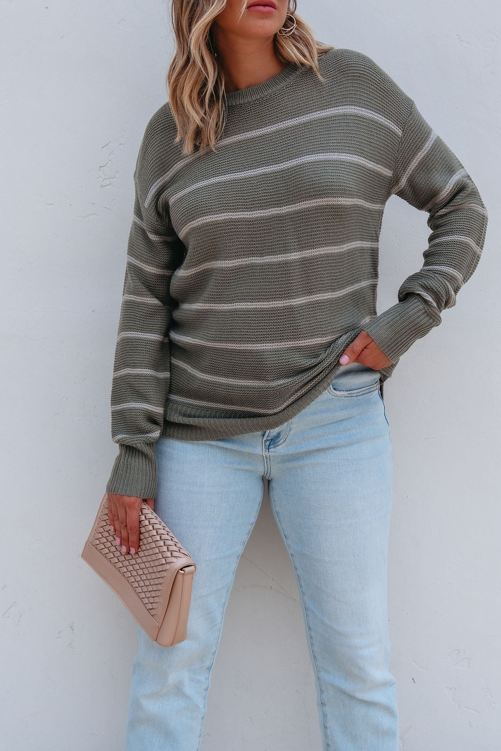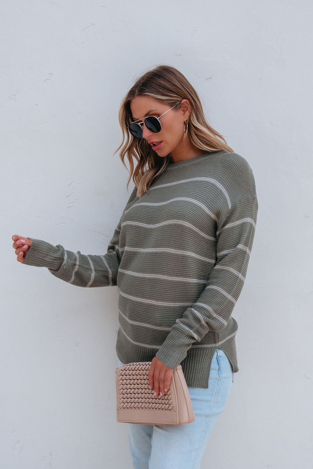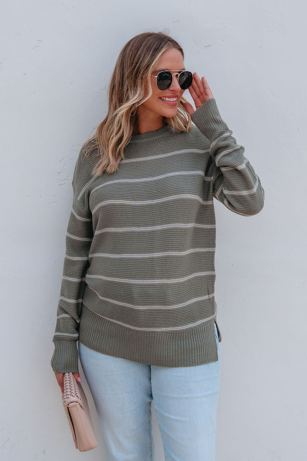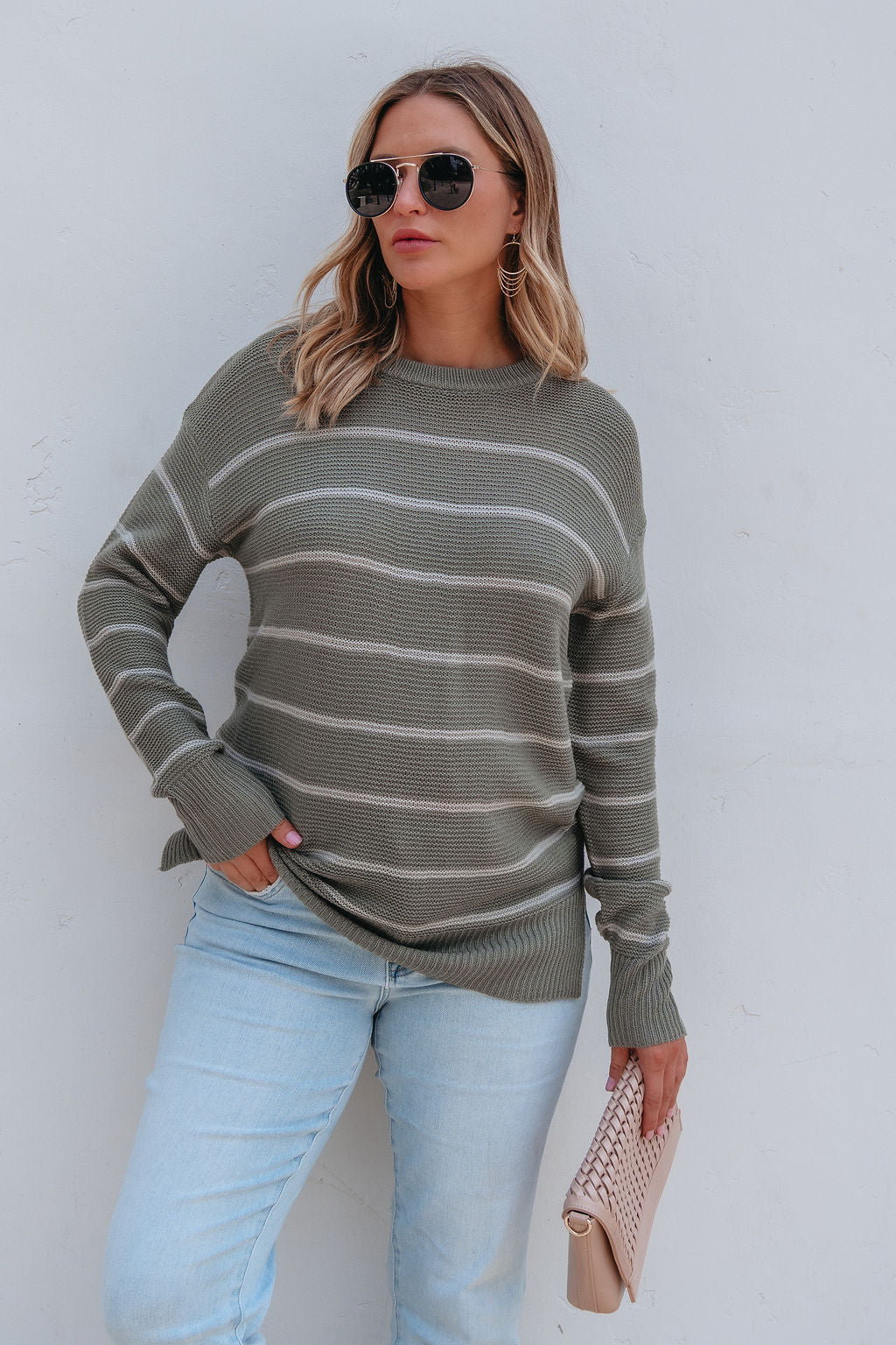 Effortless and elevated, the Rowan Tunic Sweater is your go-to for crisp fall days. Featuring a round neckline, ribbed detailing, and classic stripes, this cozy knit is cut in a tunic length with side slits for an easy, flattering fit. Style it with leggings, denim, or layered over a midi dress for a relaxed yet put-together fall look.