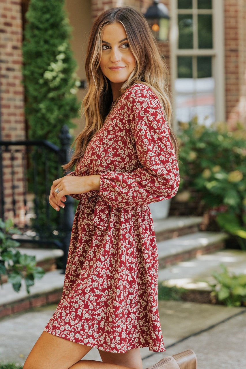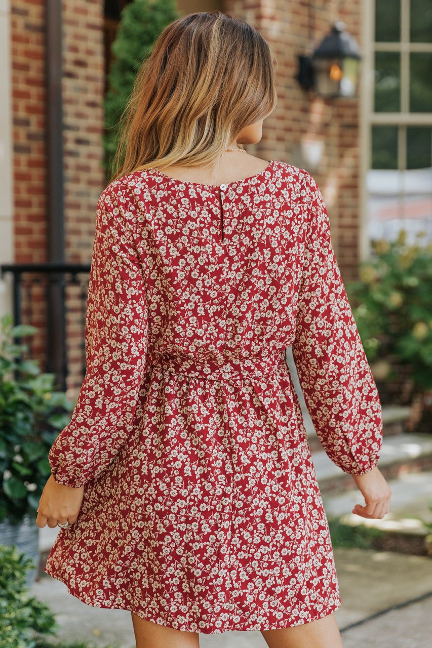 Sidney Maroon Floral Print Long Sleeve Dress - FINAL SALE