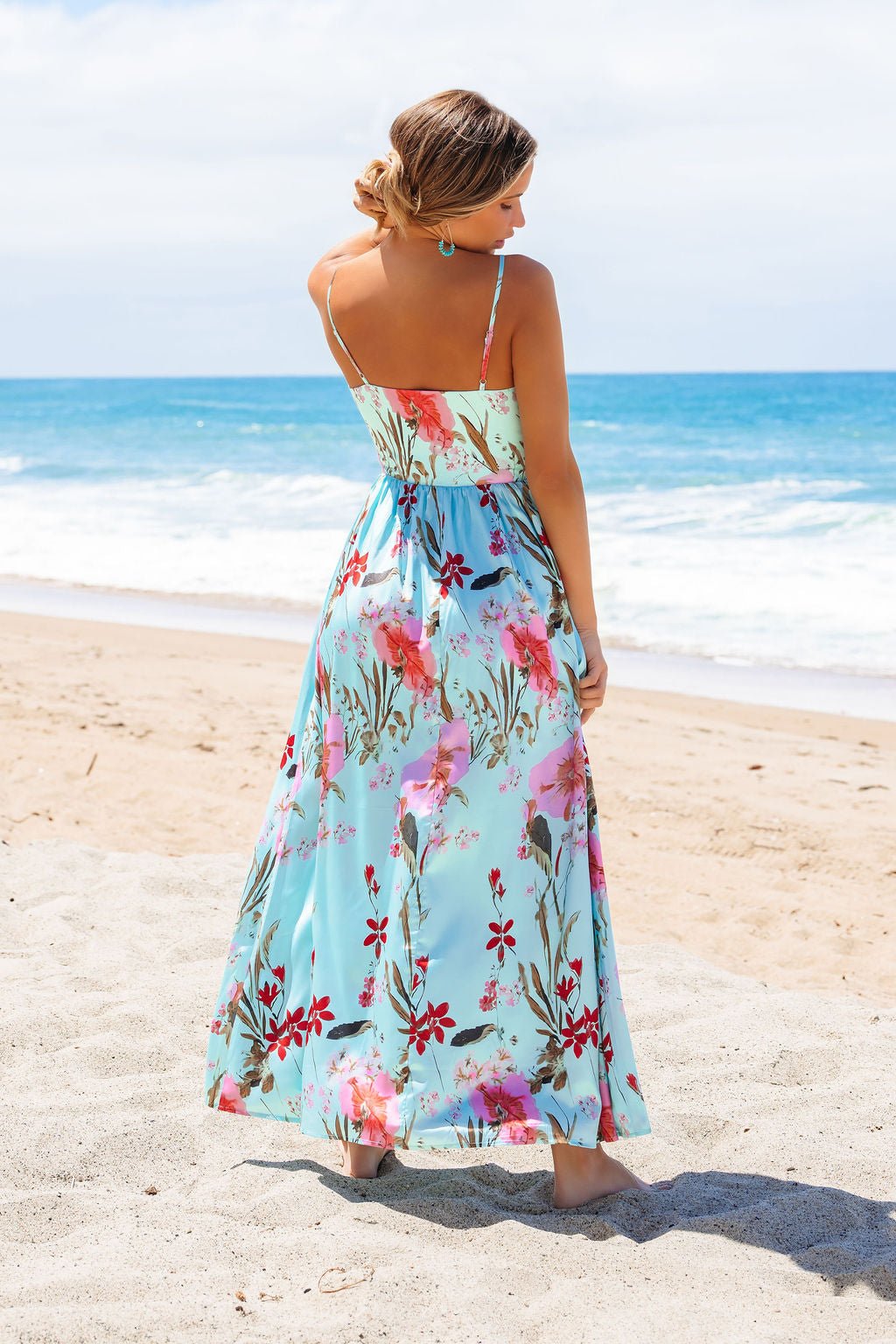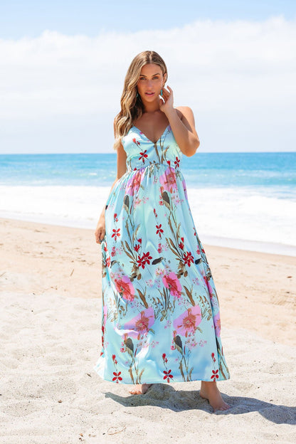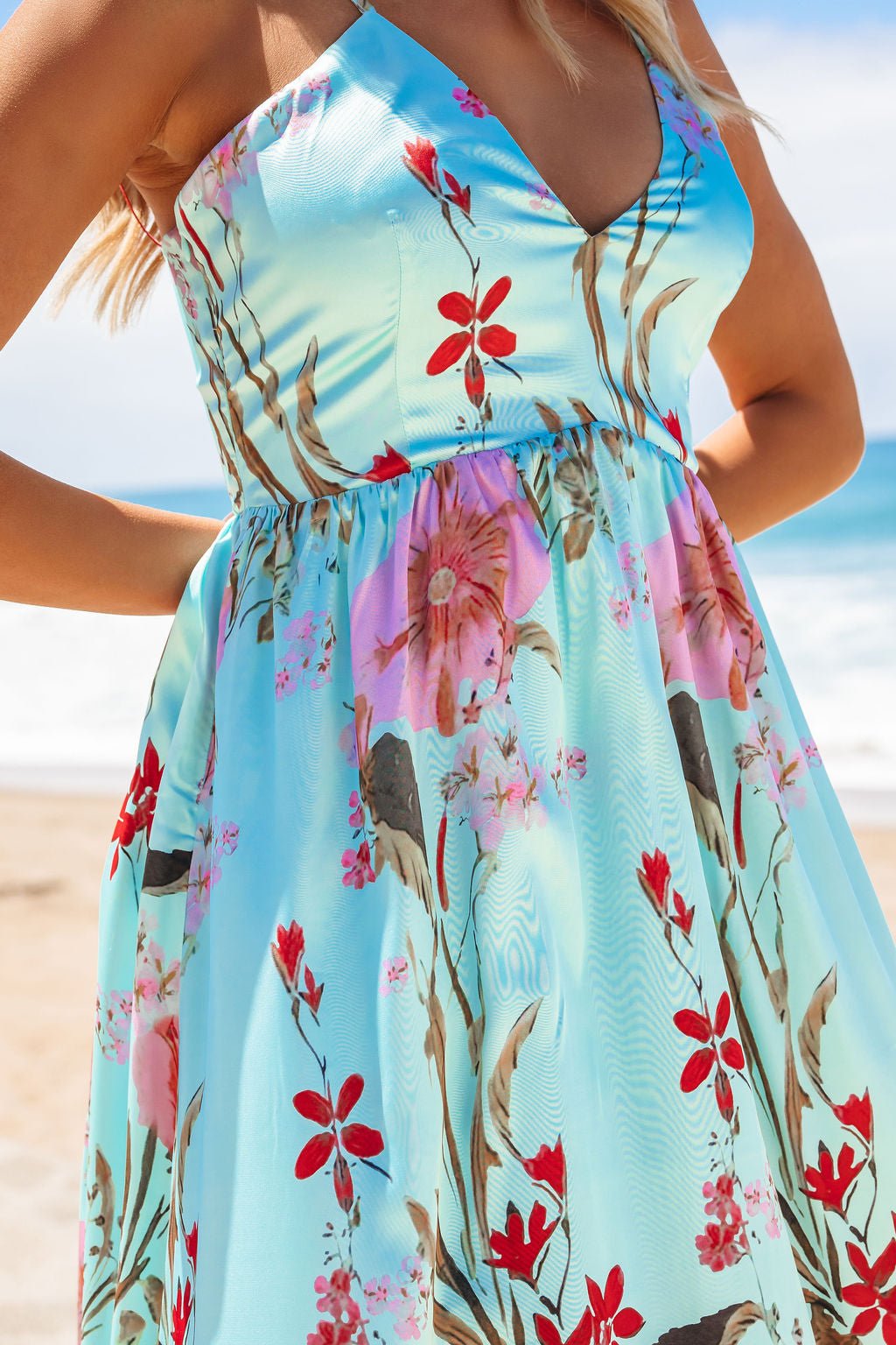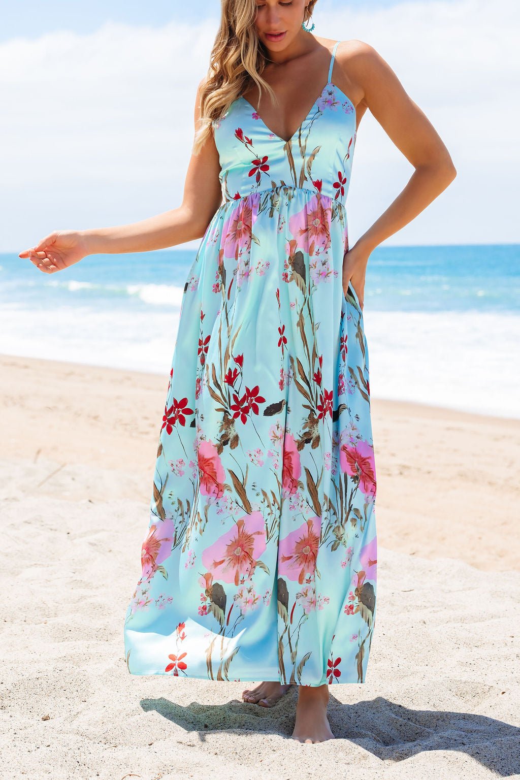 Silky Blue Multi Floral Print Maxi Dress - FINAL SALE