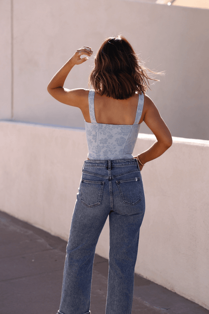 Blue Ruffle Embroidered Babydoll Tank Top - FINAL SALE