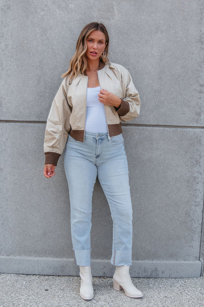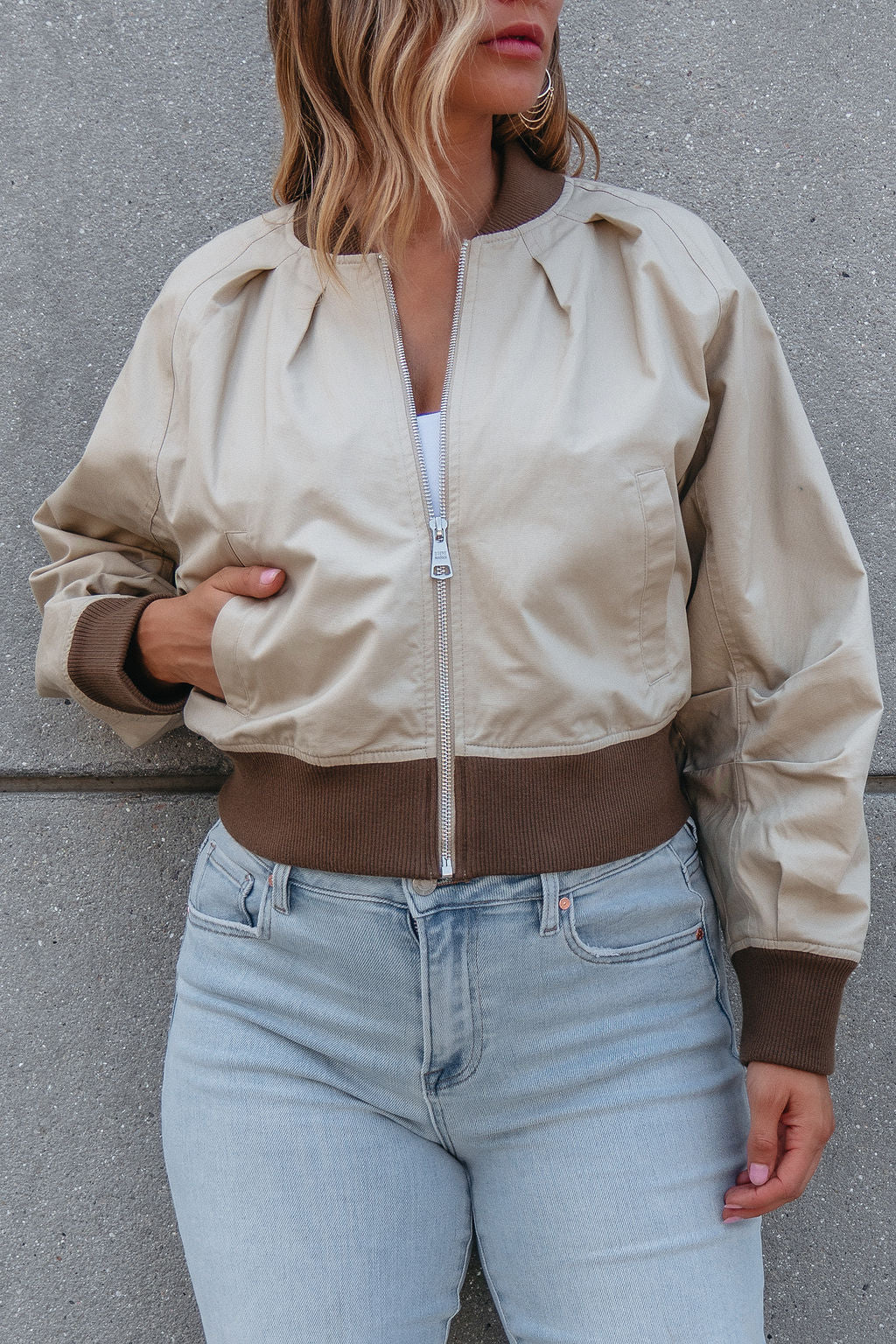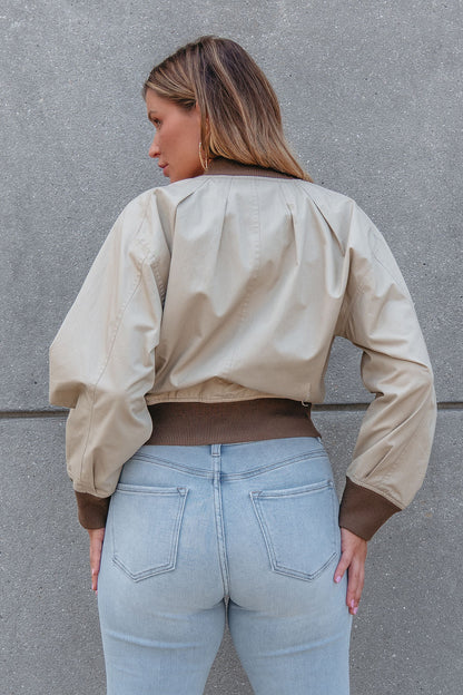 The Steve Madden Bray Jacket is your go-to outer layer for easy fall styling. Designed with a zip-up front and elevated by ribbed and contrast details, this versatile khaki jacket adds an edge to everyday looks. Whether layered over a tee or a sweater, it brings the perfect balance of structure and street-style appeal.