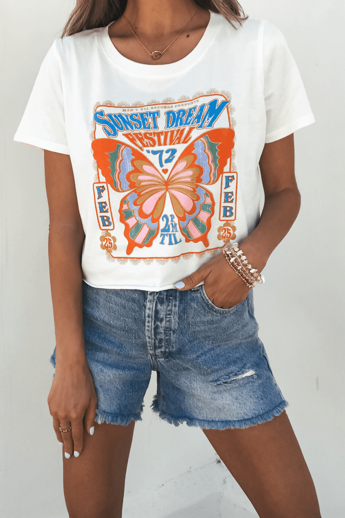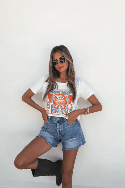 Laid-back vibes meet festival flair in the Sunset Dream Cream Graphic Tee. Featuring a bold graphic, raw hem, and relaxed fit, this tee was made for easy days and golden hours. Crafted from 100% cotton and made in the USA, it’s the kind of throw-on-and-go piece that never goes out of style.