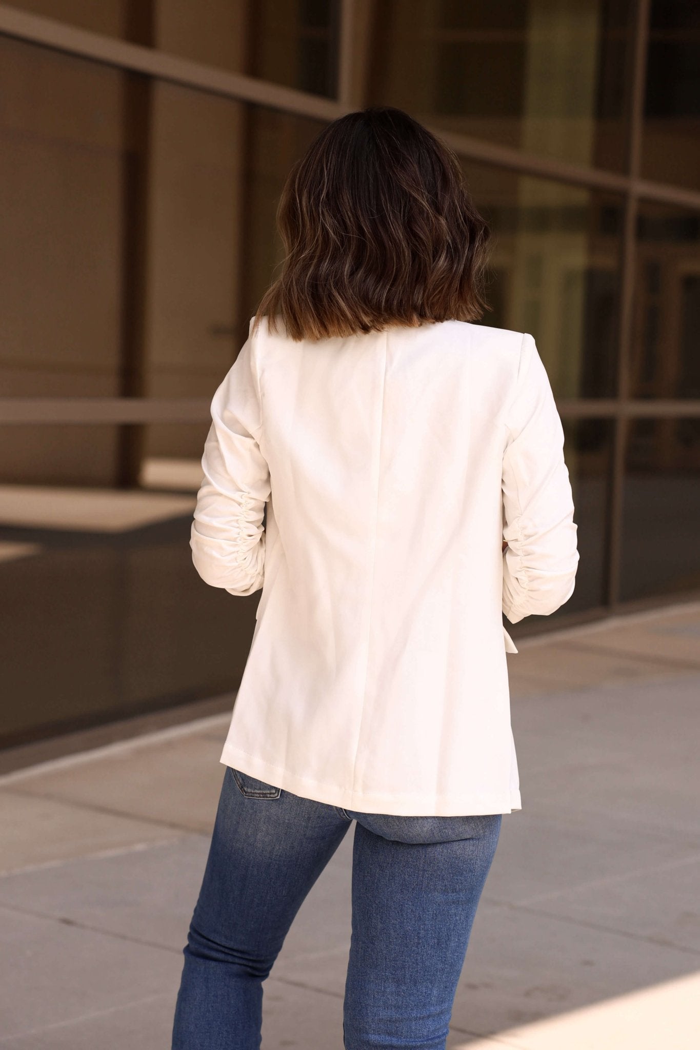 White Ruched Sleeve Blazer - FINAL SALE