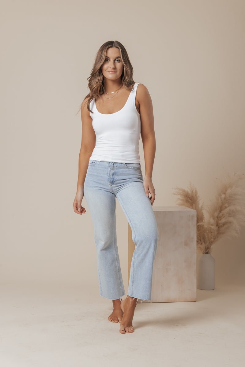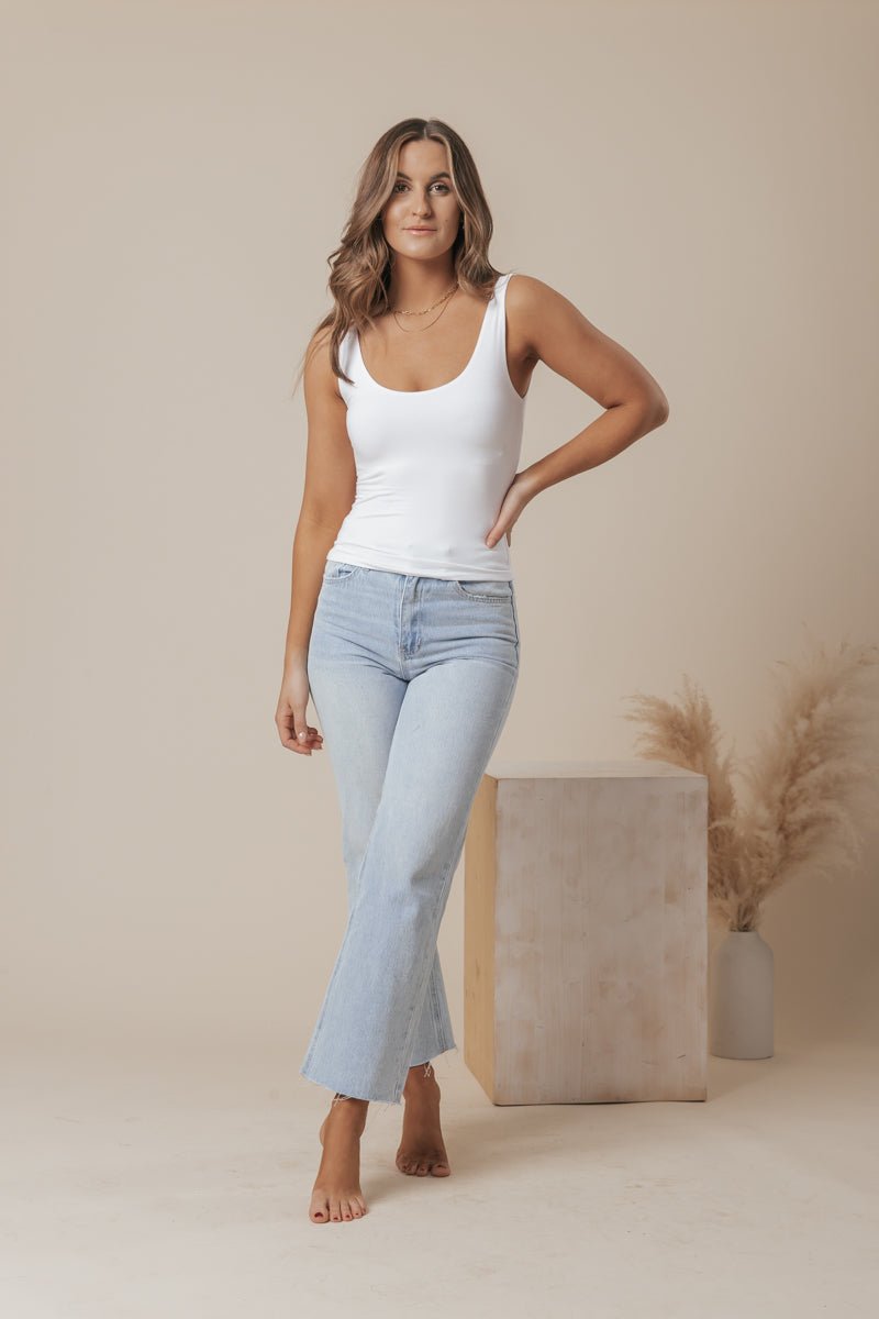 Just in! Our Scoop Neck Double Lined Jersey Tank is the ultimate essential for every woman! Features a soft & stretchy jersey fabric construction, a scoop neckline, and is double lined. Style with your favorite denim wear, booties, and a wide brim hat for a boho chic look. Available in White & Black!