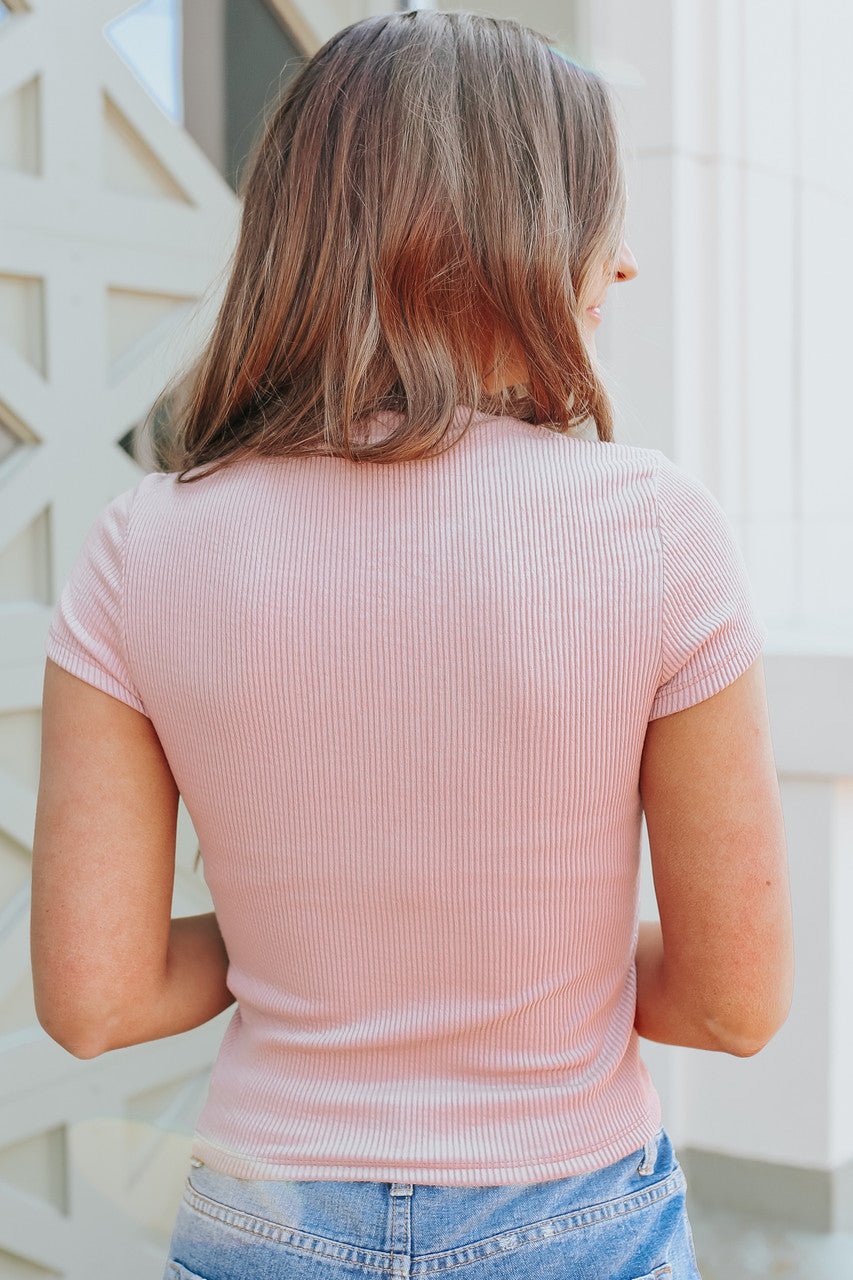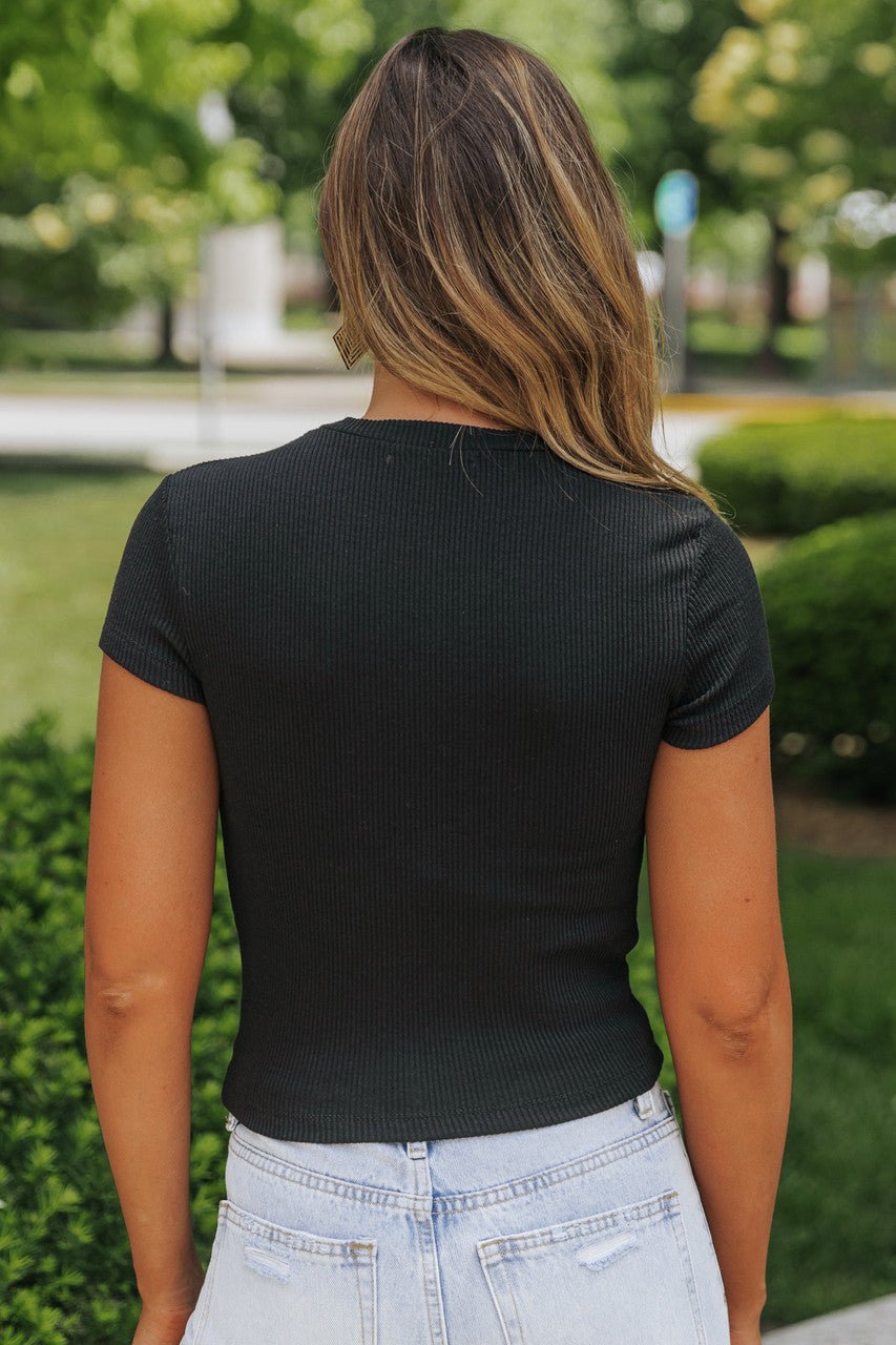 Coffee Ribbed V-Neck Button Up Top